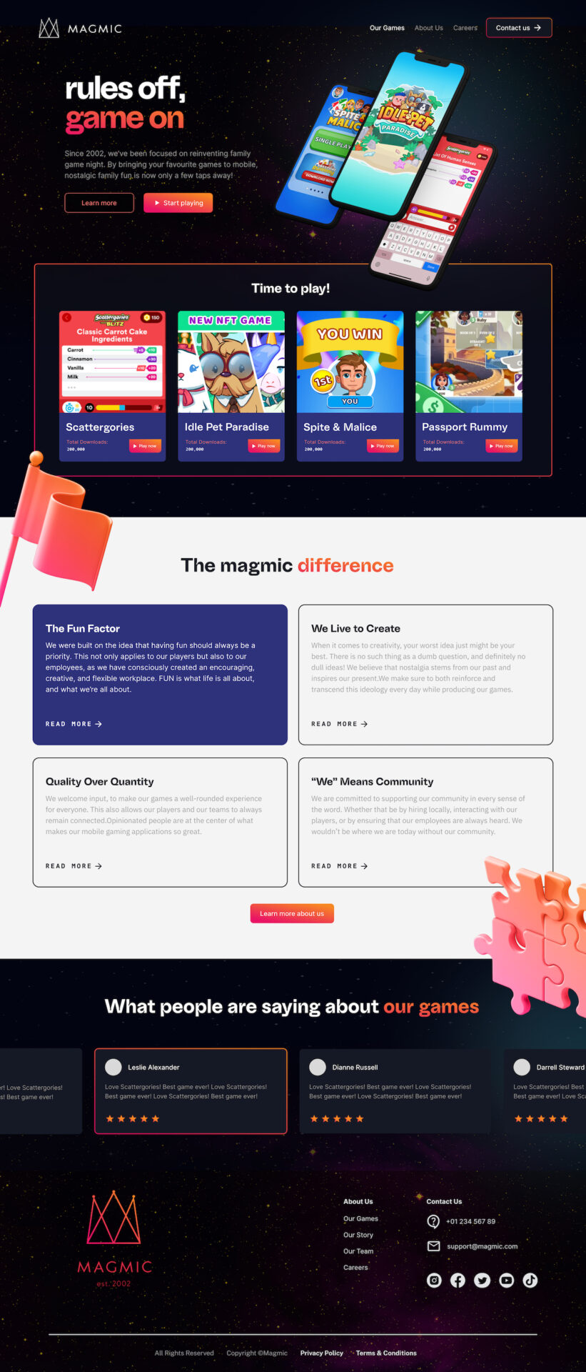 After conducting a comprehensive brand audit, I crafted a fresh visual identity for Magmic, a Canadian game design and production company. The new Magmic is both bold and minimal, polished and playful. I also creative directed and developed their website.
